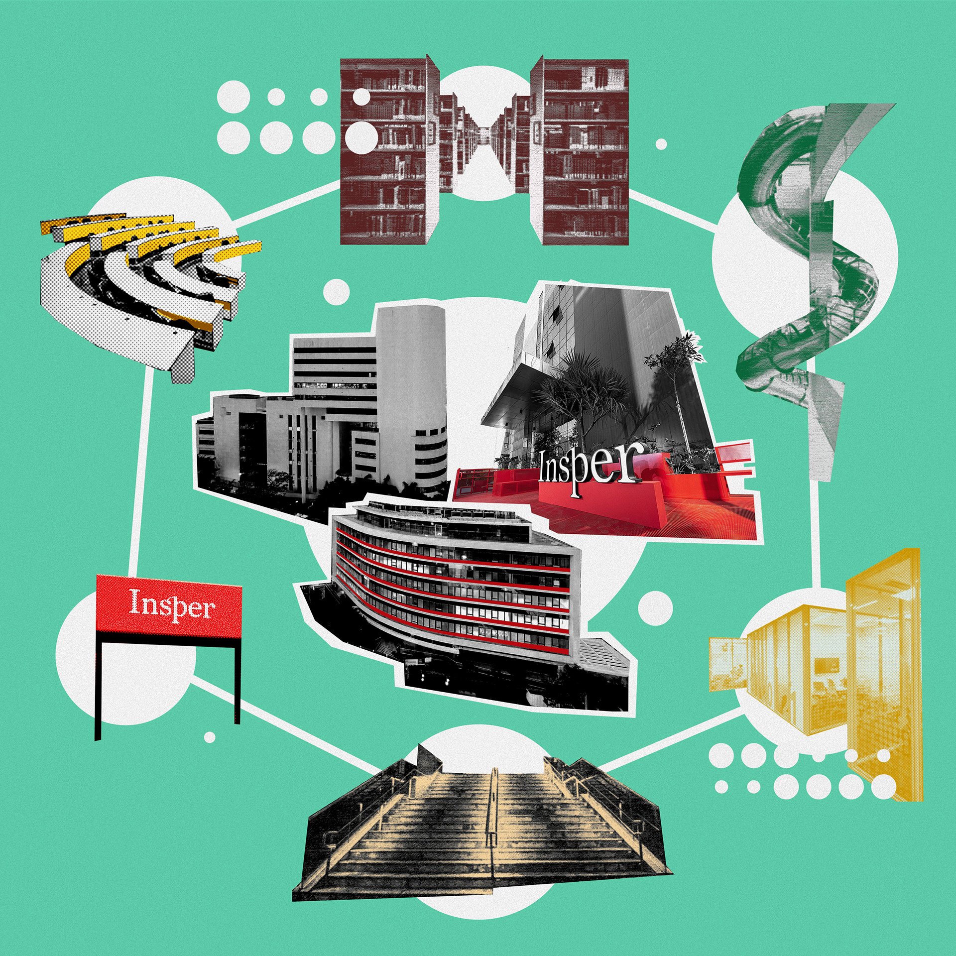 It was a joy to collaborate with Insper on a series of illustrations that visually interpret the institution’s key themes. The illustrations can be seen below. The project was a rewarding creative process, allowing me to work with collage as a central visual language.